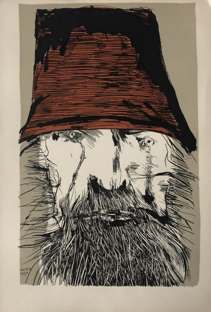 Baskin Leonard | Ahab with a Hat | technika: barevná litografie | rok vzniku: 1970 | signatura: vlevo dole v kameni | rozměr papíru: 430:290 mm | rozměr tisku: 385:245 mm