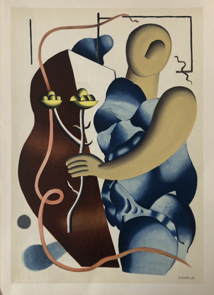 Léger Fernand | Femme tenant une fleur | technika: barevná litografie | rok vzniku: 1939 | signatura: vpravo dole v kameni | rozměr papíru: 380:280 mm | rozměr tisku: 350:250 mm